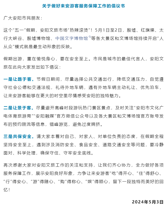 @廣大安陽市民朋友:讓路于客、讓景于客、共保安全!