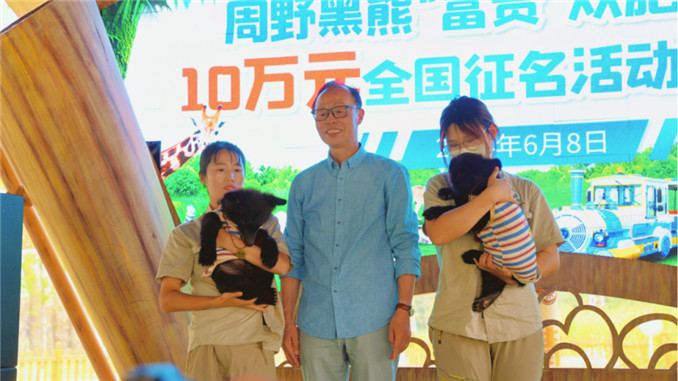 “我有名字啦!”6月8日,周口野生動(dòng)物世界網(wǎng)紅黑熊“富貴”雙胞胎幼熊10萬元全國(guó)征名活動(dòng)頒獎(jiǎng)典禮在周口野生動(dòng)物園露營(yíng)區(qū)舉行。當(dāng)日,雙胞胎幼熊名字正式揭曉,分別被命名為“周憨”和“周萌”。