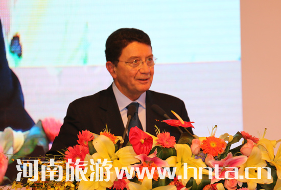 世界旅游組織秘書長塔勒布·瑞法依在致辭中說,河南的成功是中國的成功,而中國的成功是世界的成功。河南旅游資源豐富,蘊藏著悠久的歷史,昭示著無盡的未來,聯(lián)合國世界旅游組織將不遺余力地支持河南旅游業(yè)實現(xiàn)可持續(xù)發(fā)展,作為主辦方之一,我們衷心希望論壇越辦越好。
