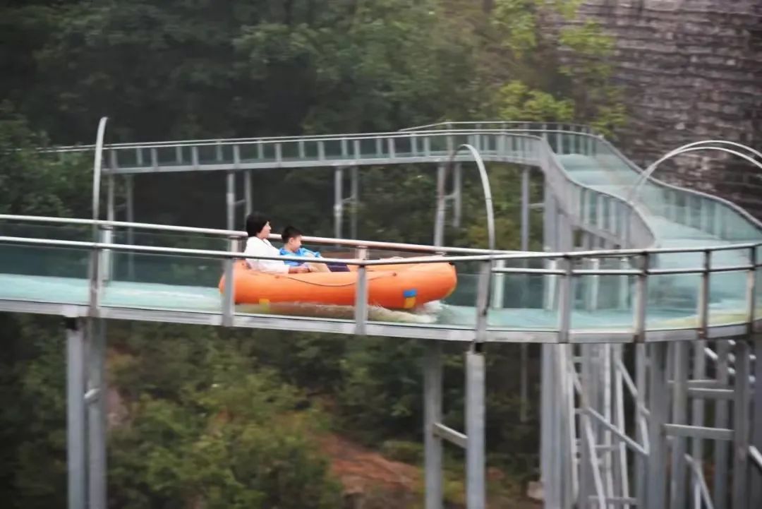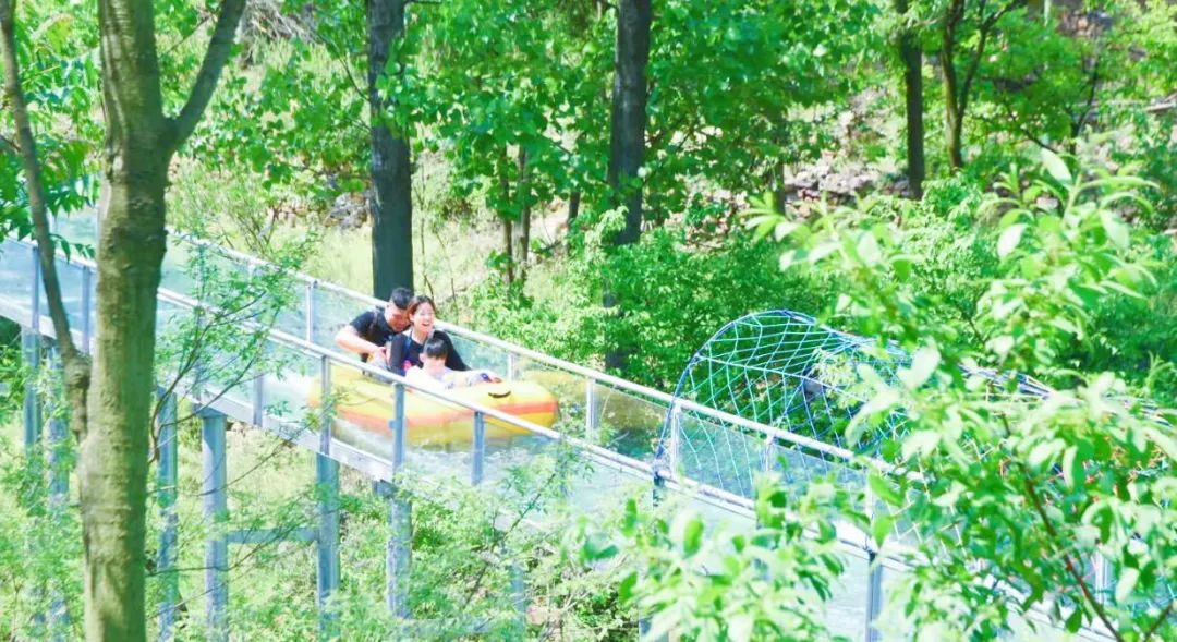 在懸浮于空中的滑道中任意穿梭,在水流的帶領(lǐng)下,穿過叢叢翠綠,千回百轉(zhuǎn),山間美景盡收眼底,漂流路線蜿蜒曲折,激流勇進(jìn),驚險刺激,也特別適合家長和小朋友一起玩噢!