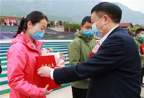 焦作市文化廣電和旅游局黨組書記米紀(jì)文頒發(fā)“焦作市文化旅游健康使者”證書▼