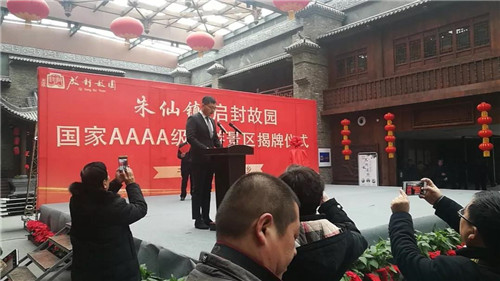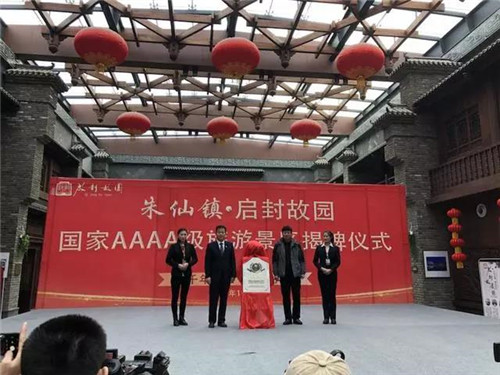 開封朱仙鎮(zhèn)·啟封故園總裁·葉耀方正式宣布并承諾·園區(qū)晉升4A景區(qū)并將在未來繼續(xù)加快步伐,完善服務(wù)提升文化融合,為更多的游客帶來全新的交互性全方位體驗(yàn)。開封市委宣傳部副部長(zhǎng)·趙偉東,中共開封市祥符區(qū)委副書記·祥符區(qū)人民政府代區(qū)長(zhǎng)·王彥濤共同為啟封故園晉升4A景區(qū)揭牌。
