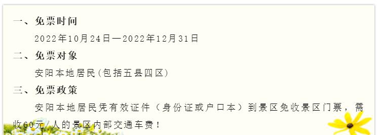 十月是收獲的季節(jié),十月是幸福的季節(jié)。在這浪漫金秋,太行大峽谷景區(qū)向,安陽本地居民免門票啦,(包括五縣四區(qū)) 需收60元/人的景區(qū)內(nèi)部交通車費(fèi)!