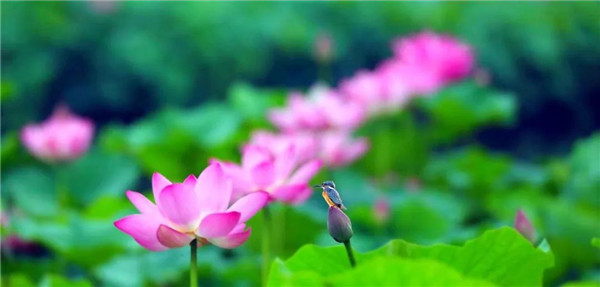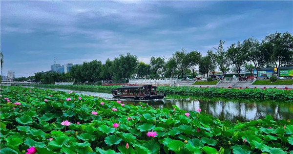市區(qū)但凡有水的地方,都能看到荷花的影子,尤其是在護(hù)城河、西湖公園,天寶河、飲馬河、許扶運(yùn)河等河段,“接天蓮葉無(wú)窮碧,映日荷花別樣紅”的盛景像一幅畫,美得令人陶醉。