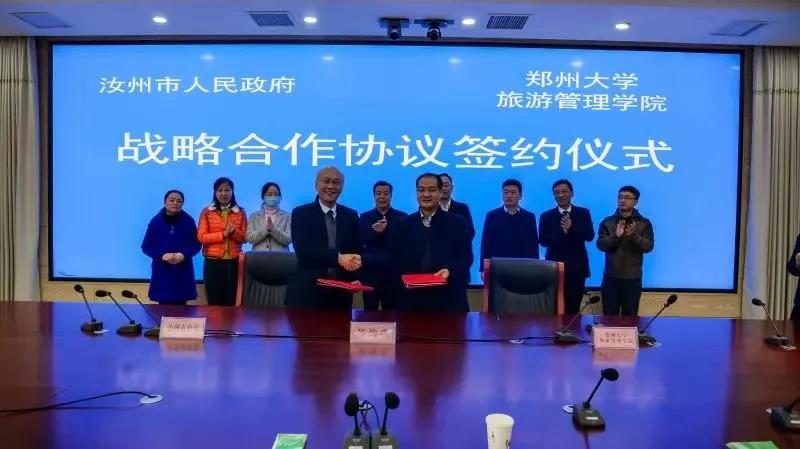 汝州市政府副市長張平懷和鄭州大學旅游管理學院副院長朱美光簽署協(xié)議