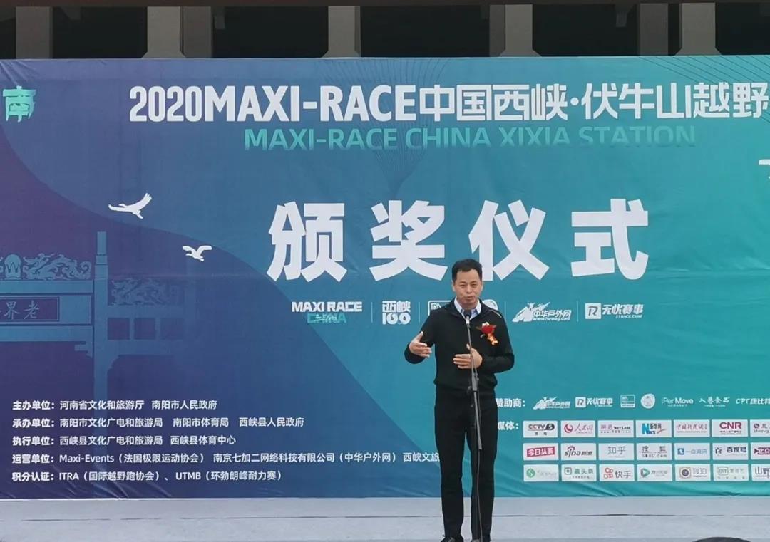 南陽市政府副秘書長畢躍杰、中央廣播電視總臺人事局主任記者屈鑫、南陽市體育局四級調(diào)研員吳建波、中華戶外網(wǎng)CEO張海峰和西峽縣委書記周華鋒、縣政府縣長馬俊、縣政府副縣長黃為民、縣政協(xié)副主席包雙勝、縣人大黨組成員袁寶峰等出席,并為獲獎選手頒獎。