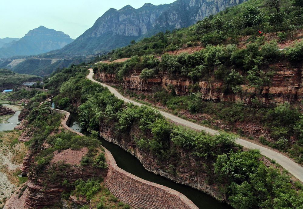 這是蜿蜒穿行于太行山間的紅旗渠總干渠(2019年7月4日攝,無人機(jī)照片)。新華社記者 李安 攝