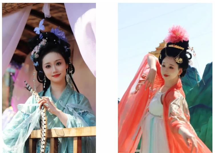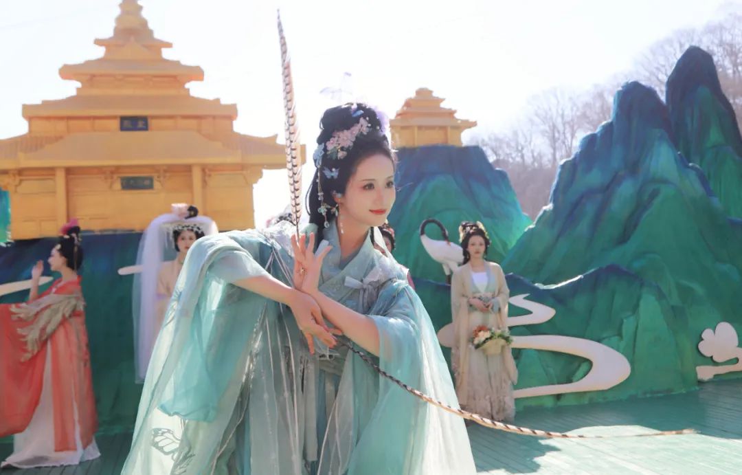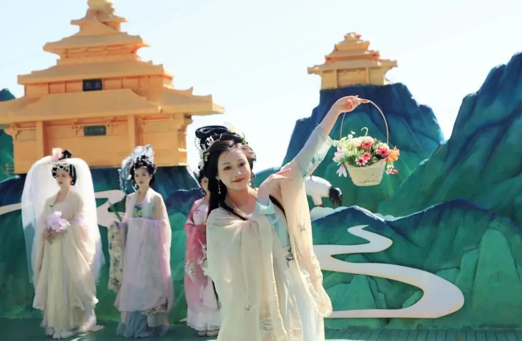 遙望遠(yuǎn)山成黛,近看殊色成錦。美麗的十二花神還原了漢風(fēng)古韻,與中天門廣場的花海相映成畫,傳承千年文化之美。