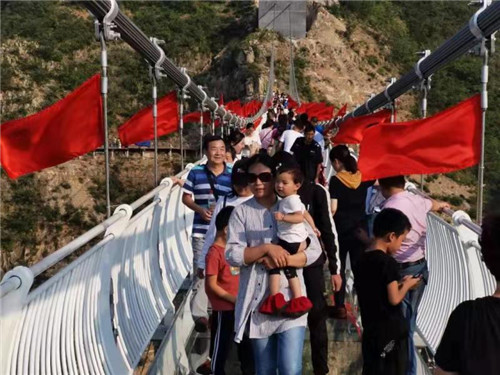 二、城鄉(xiāng)一體,全域旅游別樣紅。祖國七十華誕慶典的歡樂氛圍洋溢在濟源城市鄉(xiāng)村,大街小巷“中國紅”成為主題色。世紀(jì)廣場改造、河道水系、濱河綠道、夜間亮化等一系列城市提質(zhì)工程陸續(xù)竣工,濟源旅游城市形象、城市品位得到進一步提升。各主干道被紅旗與燈籠裝扮的絢麗奪目,科技館、博物館、城市公園等休閑場所人頭攢動,市民游客熙熙攘攘。中央游憩區(qū)國慶主題景觀、鮮花鋪筑的“中國夢地圖”、建國70周年圖片展精彩展現(xiàn),市民游客穿越時光倍增自豪。市民游客賞國慶花雕,乘免費公交,喜氣洋洋點贊共和國、謳歌新時代。旅游餐飲與住宿持續(xù)火爆,市區(qū)一家親廣場、同心街、河合街、周園街等旅游特色餐飲街區(qū)和豫鄂匯、小興東、晉卿美食等各大中小餐飲飯店一席難求,高中低檔酒店均入住客滿,美食小吃街、夜市燈火璀璨。第九屆世界趙族懇親大會隆重舉行,來自海內(nèi)外的千余名趙姓宗親嘉賓歡聚一堂,共話鄉(xiāng)愁。承留花石村“秋曬金花石文化旅游節(jié)”,五谷豐登、瓜果滿場,村民用辣椒、玉米拼出閃亮國旗,以“曬秋”方式慶祝豐收,祈愿國泰民安。王莊恒盛國際汽車文旅度假小鎮(zhèn)多姿多彩的梨園春表演、名家字畫公益拍賣等系列活動贏得了游客的交口稱贊。五龍口馬村酥梨飄香,下冶韓彥紅果成熟、石榴豐收,王屋山辣椒、柿子火紅一片,和濟源農(nóng)民質(zhì)樸的笑容交相輝映,游客紛紛拿出相機和手機拍抖音、發(fā)自拍,體驗鄉(xiāng)村生態(tài)、分享收獲喜悅。各鄉(xiāng)村旅游點農(nóng)家飯、農(nóng)事體驗、農(nóng)家土特產(chǎn)受熱捧,民宿供不應(yīng)求,游客接待秩序井然。濟源全域旅游以優(yōu)良的產(chǎn)品、優(yōu)質(zhì)的服務(wù)、優(yōu)美的環(huán)境向國慶獻禮,向游客獻禮。