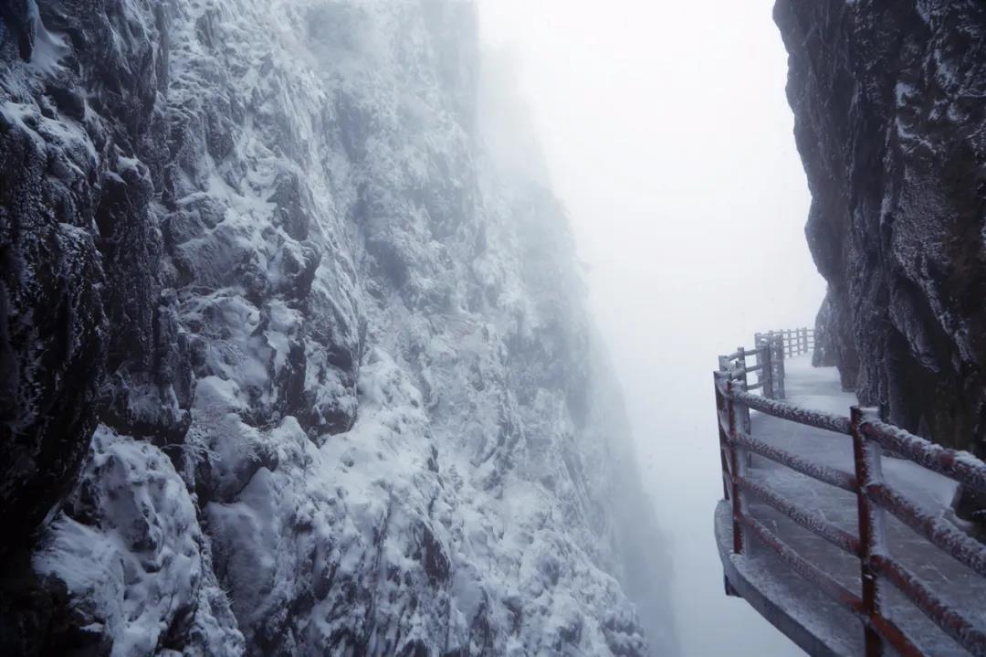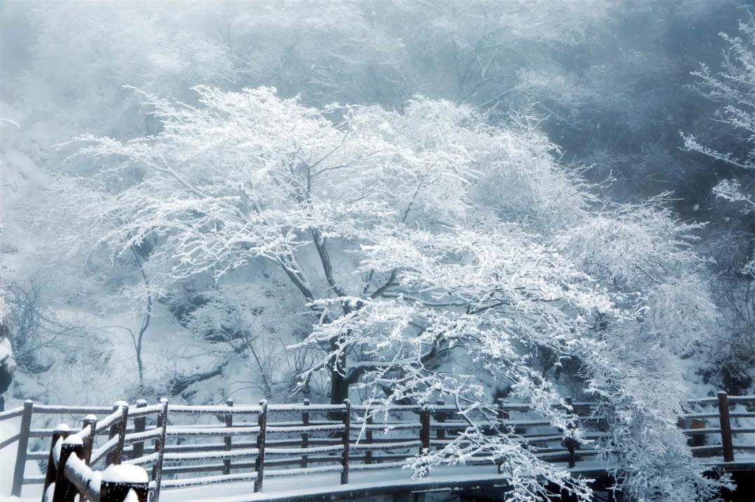 一場倒春寒,使得花與雪在老君山不期而遇,真正讓游客感受了一日穿越春冬兩季,十里不同天的奇景。