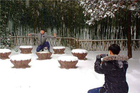 圖:雪中擺姿勢拍照的游客