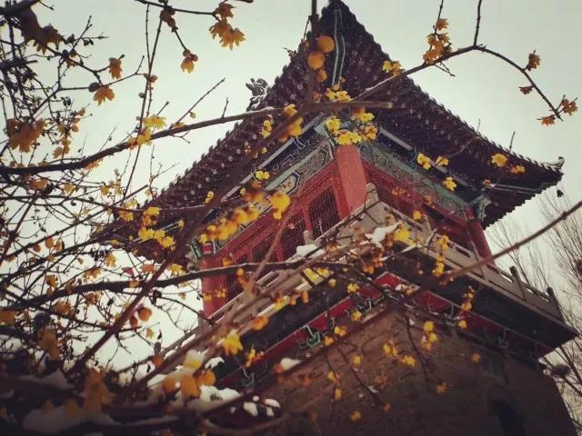 瓦上雪落,嶺上冰霜。石窟臘梅,這是冬。
