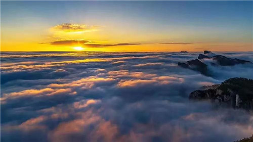 早晨,初升的太陽給云海鑲了一道金邊,云海日出,旭日祥光,開啟了白云山最美的一天。