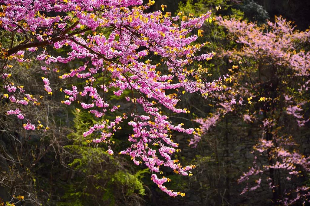 紫荊花代表著親情,有著合家團(tuán)圓、兄弟和睦的美好寓意,老君洞山上的紫荊花皆為野生,靈性十足,選擇老君洞作為棲息地,八成是因?yàn)樗奶刭|(zhì)剛好符合了她“和睦”脾性吧。