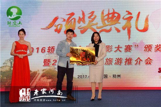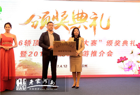 河南省旅游攝影協(xié)會(huì)秘書(shū)長(zhǎng)楊志威向轎頂山景區(qū)授予“攝影采風(fēng)基地”稱(chēng)號(hào)