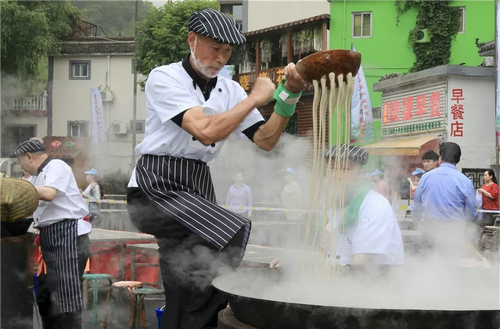 精準(zhǔn)扶貧是本次萬(wàn)人宴的亮點(diǎn)之一。潭頭紅薯粉條已有400多年的歷史,全部由當(dāng)?shù)貍鹘y(tǒng)做法手工制作。