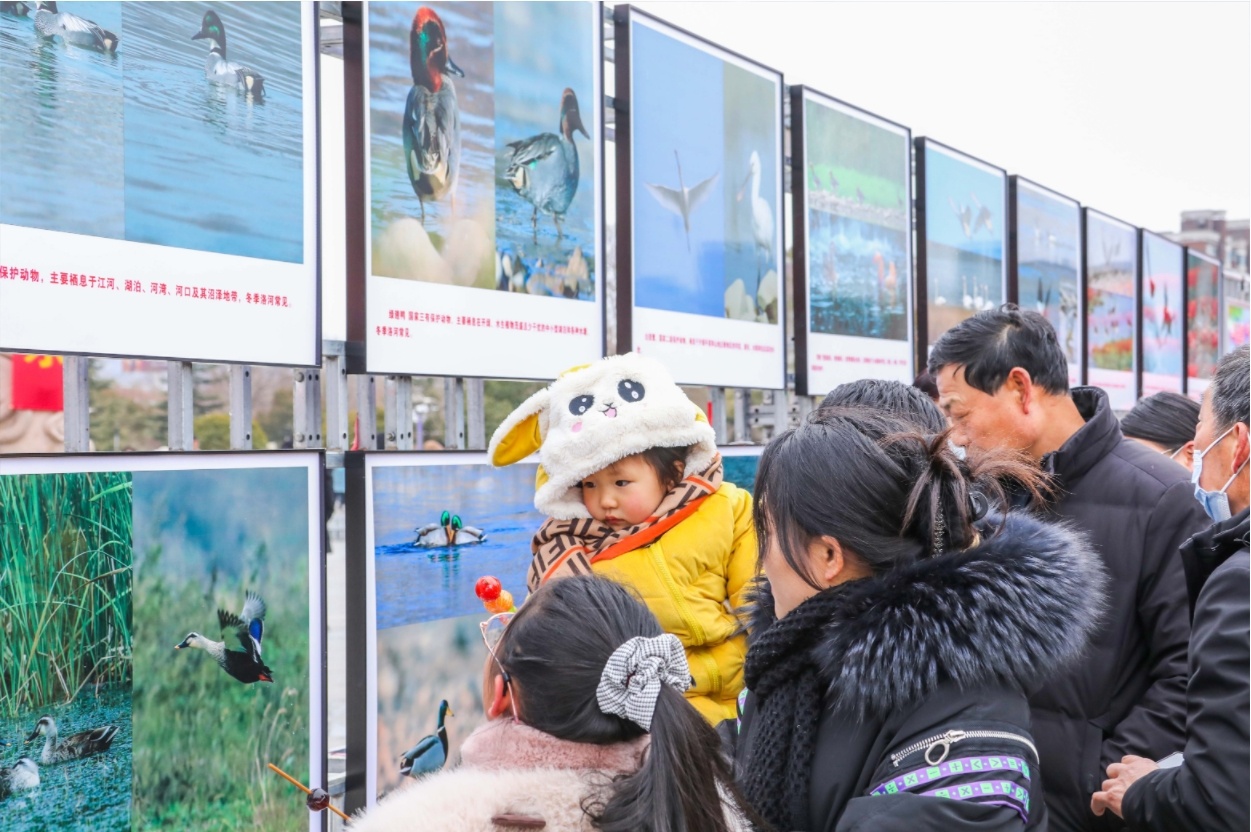 2024年2月23日,在河南省三門峽市盧氏縣盧園廣場“百鳥翔集”攝影展前,熱鬧異常。一張張精彩紛呈的鳥類攝影作品吸引了全縣群眾的目光,來自社會(huì)各界的群眾在現(xiàn)場參觀、拍抖音、發(fā)朋友圈,呼朋喚友,忙得不亦樂乎,更有眾多家長帶著孩子們前來觀展。一時(shí)間,影展成了“萌寶”打卡地。