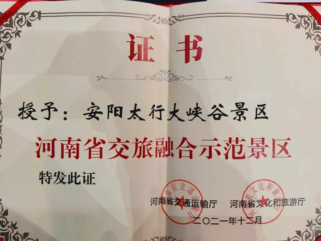 行走河南,讀懂中國(guó)。為深入貫徹落實(shí)省委、省政府《關(guān)于建設(shè)文化旅游強(qiáng)省的意見(jiàn)》,加快構(gòu)建“交通+旅游”融合發(fā)展新格局,12月16日,由河南省文化和旅游廳、河南省交通運(yùn)輸廳共同主辦的全省交通運(yùn)輸與文化旅游融合發(fā)展推進(jìn)會(huì)在洛陽(yáng)欒川召開(kāi),太行大峽谷景區(qū)被授予河南省交旅融合示范景區(qū)。