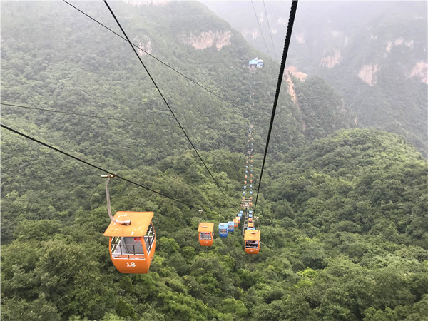 抵達青龍峽峽谷后,游龍戲鳳、九連瀑、青龍?zhí)、疊翠谷再一次吸引了眾人的眼球。在欣賞美景的同時,媒體的小伙伴們不忘用相機和手機記錄下這一路的山、水、樹、瀑、花,并不時將這畫卷般的山水分享到各自的朋友圈。在峽谷中段的核心景點——望龍瀑布,只見白練飛瀉,水珠迸濺,水流撞擊巨石的轟響攝人心魄。乘坐索道緩緩上行,頓時感到?jīng)鲲L習習,不時能聽到各種鳥叫。放眼群山、云、巒、風、灘,無不感嘆大自然的壯觀。