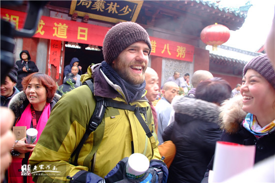 來自波蘭的Sarah此次是同她的兒子Alex一同前來少林寺的,提到今天的施粥法會,她看起來非常高興,“沒想到來少林寺能遇上這樣一場民俗盛事,能夠在中國的傳統(tǒng)節(jié)日臘八節(jié),在禪宗祖庭、佛門圣地少林寺喝到一碗熱粥,真的是意義非凡。粥很好喝,我們非常開心!”