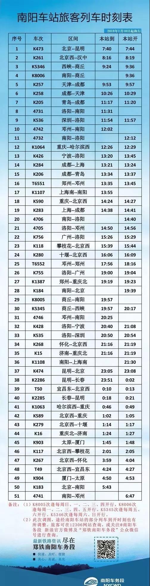 目前,鐵路部門正積極向上級(jí)申請(qǐng)列車恢復(fù)開(kāi)行計(jì)劃。按照預(yù)測(cè),2月份還將有部分列車相繼恢復(fù),寧西線各趟列車也將在4月份全面恢復(fù)。結(jié)合列車恢復(fù)情況,小編對(duì)南陽(yáng)站短期內(nèi)的列車時(shí)刻表進(jìn)行了修正完善,希望大家惠存轉(zhuǎn)發(fā),以備不時(shí)之需。