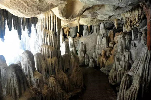 八里溝天河簾瀑之下長(zhǎng)達(dá)200米的水簾洞,全年可供游客通行。若天氣晴朗,陽(yáng)光直射,彩虹飄帶,七色俱全,忽隱忽現(xiàn)。