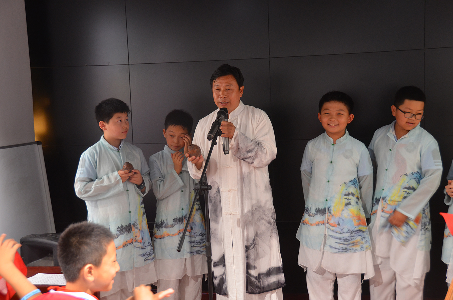 一批小學(xué)生身著漢服在武陟嘉應(yīng)觀感受黃河泥塤的魅力 武陟縣文化廣電和旅游局供圖