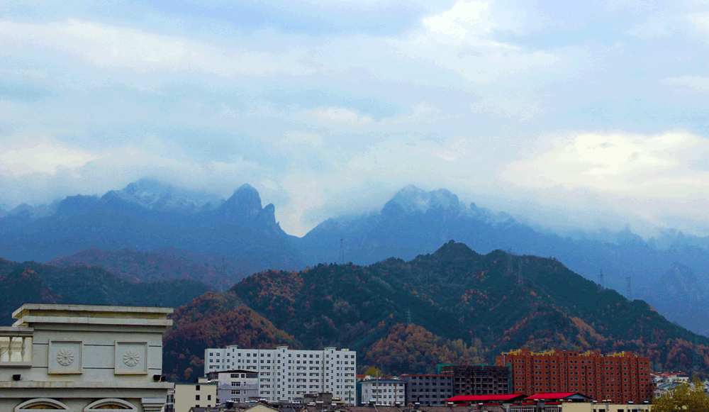 欒川的秋色經(jīng)得起近看,也禁得住遠(yuǎn)觀。看到近處山上的五彩斑斕,和遠(yuǎn)處山巔的雪頂嗎?欒川的秋景就是這么不拘一格,沒辦法,都是老天爺給的。