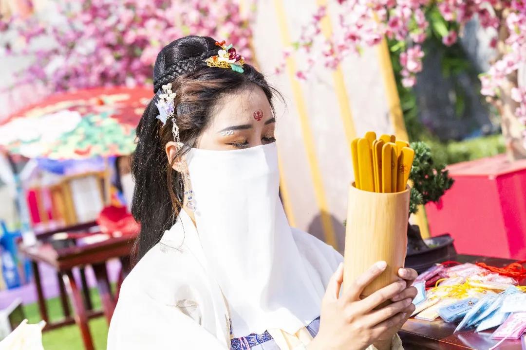 “紅塵事,情人結(jié),悲歡離合,紅線手中捏。”在七夕民俗體驗(yàn)區(qū),你可以向月老求簽解姻緣,親自動手用鳳仙花染指甲,剪下一縷青絲編入紅繩,作為定情信物送給心愛的Ta,還可以體驗(yàn)投壺游戲,幸運(yùn)的你還有機(jī)會贏取禮品哦。