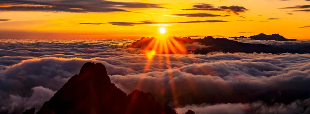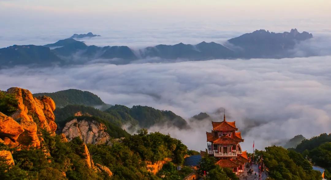 玉皇頂海拔2216米,因峰插天宮、頂如皇冠而得名。站在這里極目遠(yuǎn)眺,綿綿青山,青峰千疊,莽莽蒼蒼,形成了一幅自然生態(tài)潑墨山水畫。晴空萬里時看重山綿延天際,萬峰匯聚足下;云海翻騰時眼空瑤海一萬里,仿佛身在蓬萊仙閣,登高望遠(yuǎn),總是能激起人的蒼茫雄壯之心,忘卻世事擾擾紛紛。日出之時,滿天的彩霞,殷紅的朝陽,絢麗的群峰,金色的萬木,構(gòu)成了一幅壯麗的畫卷,令人嘆為觀止!