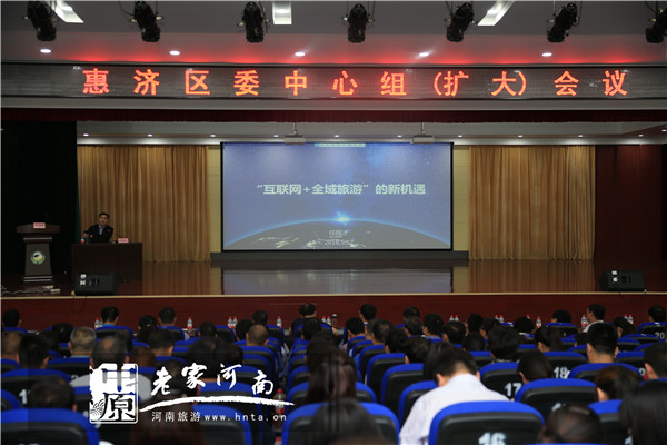 2016年5月17日下午,鄭州市惠濟(jì)區(qū)委中心組以《“互聯(lián)網(wǎng)+全域旅游”的新機(jī)遇》為主題的專題報(bào)告會(huì)在鄭州市七十九中學(xué)報(bào)告廳舉行。邀請(qǐng)了上海景域國(guó)際旅游運(yùn)營(yíng)集團(tuán)助理總裁任國(guó)才前來授課;轁(jì)區(qū)副縣級(jí)以上領(lǐng)導(dǎo)干部,副科級(jí)以上干部,教體局、發(fā)改統(tǒng)計(jì)局、文化旅游局、衛(wèi)計(jì)委、國(guó)土局等相關(guān)單位中層,各行政村、社區(qū)書記、主任,轄區(qū)文化、旅游企業(yè)負(fù)責(zé)人參加了會(huì)議;轁(jì)區(qū)委常委、宣傳部長(zhǎng)張衛(wèi)民主持會(huì)議。