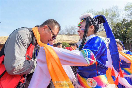 在活動(dòng)現(xiàn)場媒體朋友、攝影師還欣賞到了優(yōu)雅的舞蹈表演,舞蹈演員精彩的表演贏得了陣陣喝彩聲。來自青藏高原的藏族小伙、姑娘們還為大家?guī)砹嗣褡逄厣璧副硌荩尨蠹以谄呤毒湍茴I(lǐng)略濃濃的民族風(fēng)情,大家仿佛來到了遙遠(yuǎn)的西藏。