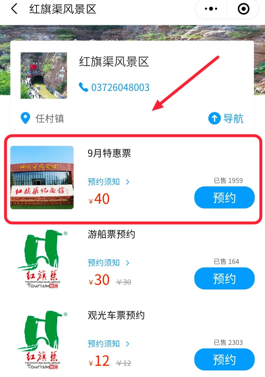 方式二:關(guān)注“紅旗渠旅游”官方微信公眾號,點(diǎn)擊【票務(wù)預(yù)訂】——【門票預(yù)約】——【9月特惠票】