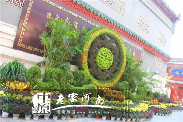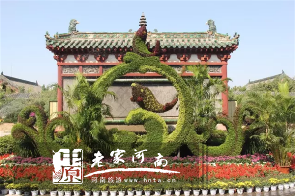 位于南照壁前的“如魚得水”景點(diǎn),用五色草及菊花扦插出浪花”與“鯉魚”的造型,配以盆景及花卉,“魚”靈動(dòng)的在“浪花”中跳躍,寓意美好的前程和生活的順利。