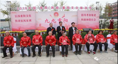 開幕式上,與會領導向9位“重陽壽星”代表頒發(fā)證書,并贈送西峽有機綠色產(chǎn)品、南陽景區(qū)免費度假卡、仲景健康禮品、人保健康保險等大禮包,對評選出來的西峽縣第五屆“十大孝子”頒發(fā)榮譽證書及獎金。