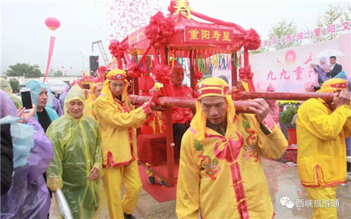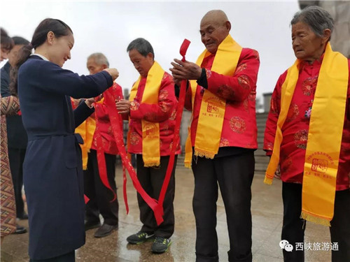 2019重陽文化旅游節(jié)活動當天,傳承千年的重陽民俗重新上演,體驗八臺大轎、登高祈福及品重陽糕菊花酒、戴茱萸囊等祝壽活動使重陽節(jié)文化氛圍濃厚,營造了敬老、親老、愛老、助老的風尚,使“重陽壽星”們個個喜笑顏開。
