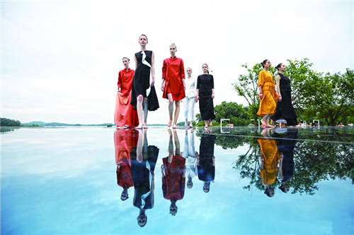 中外模特打卡信陽南灣湖天空之鏡