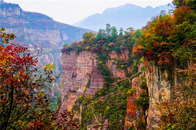 如果你想要俯瞰整個山間的美景,崖邊漫步+高臺俯視,不僅能欣賞冬天的韻味,還能看到難得的藍天白云。