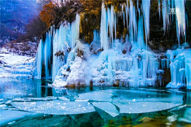 冬季寶泉冰掛堪稱一絕,片片晶瑩潔白,根根萬劍橫插,人在其中,猶入仙境。