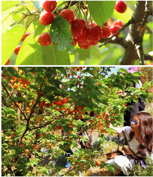 眼下正是櫻桃采摘的時(shí)候,成熟的櫻桃吸引了不少前來(lái)采摘的游客,累累果實(shí)如同串串紅寶石,輕輕一碰便落入掌心,味道酸酸甜甜。