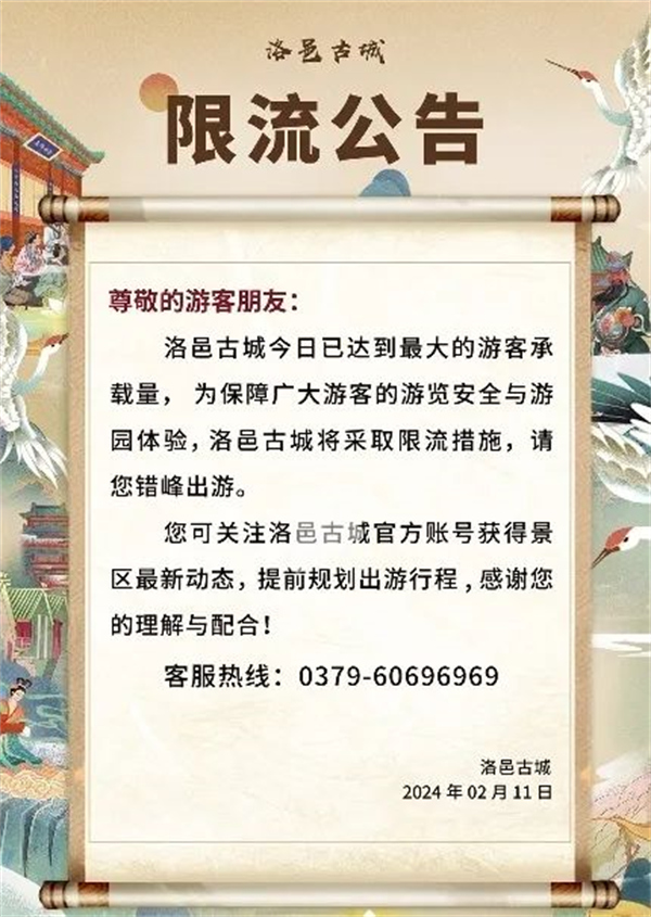 【緊急提醒】洛邑古城今日已達(dá)最大游客承載量