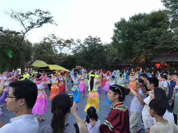 亮點之清涼快閃:舞蹈演員和清園紅人組成的清涼快閃團隊是夜游里的一大亮點,異域美女和古裝大佬們的激情碰撞,挑起了大家的興奮神經(jīng),讓我們一起歡樂一起嗨……
