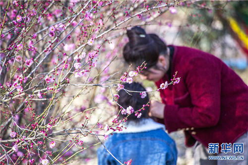 2月19日,平頂山市魯山縣城望頂森林公園,綻放的梅花。