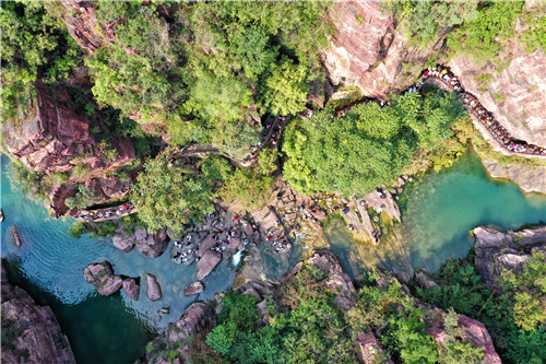 國慶假期第二天,云臺山景區(qū)人氣火爆,迎來客流高峰,景區(qū)秩序井然,游客體驗舒適。