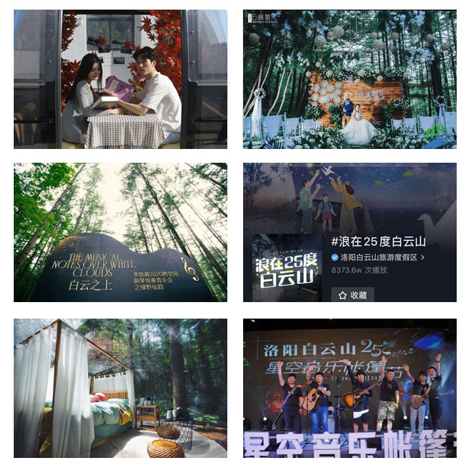 2019年白云山獲得了“省級五鉆智慧景區(qū)”、“河南省中小學(xué)生社會實踐教育基地”、“河南避暑旅游目的地”、“洛陽市體育產(chǎn)業(yè)示范單位”等稱號;舉辦了一系列高品質(zhì)的廣宣活動,包括第四屆“洛陽白云山杯”中國圍棋棋圣戰(zhàn)、“快樂老家夏日營地”詩歌音樂節(jié)、新春廟會、三八絲巾女神節(jié)、光豬跑、五一電音篝火晚會、夏季嬉水節(jié)、金秋紅歌廣場舞大賽、懸崖露營、高空彩虹帳篷節(jié)等活動二十余場。加大新媒體營銷力度,新媒體的運用,提升白云山官方微博、微信、抖音等自媒體平臺建設(shè),聯(lián)合今日頭條、抖音、微博達人開展多場大V采風(fēng)活動,使得白云山頭條、微博、抖音話題閱讀量有了極大提升。