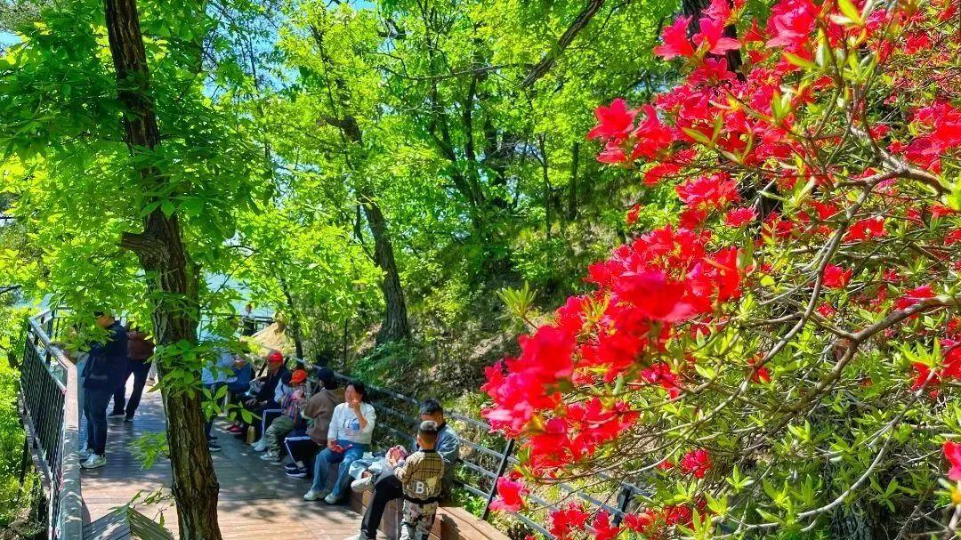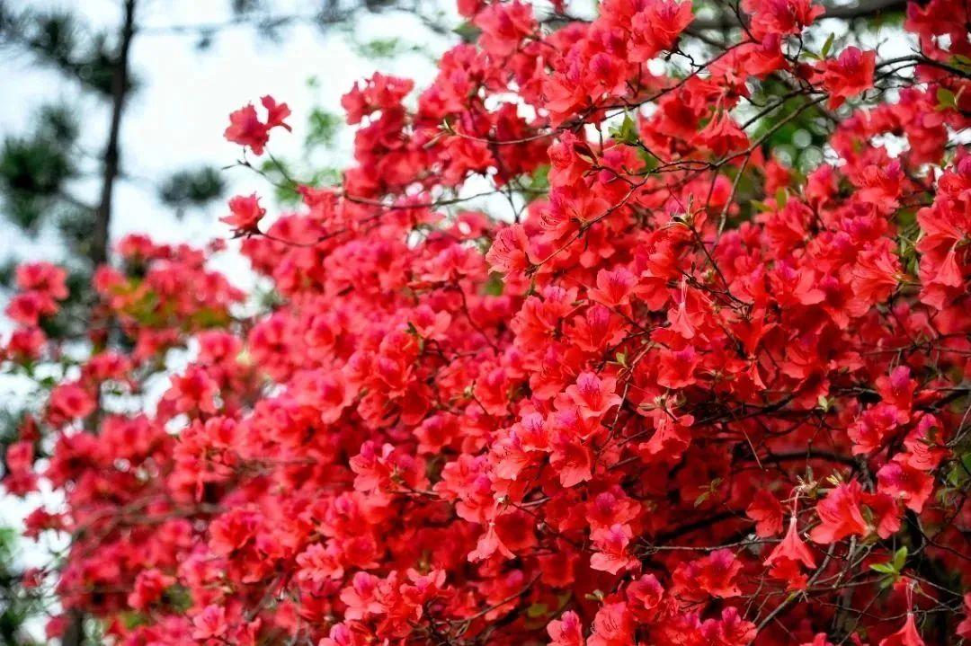 仙人峰上有著一大片野生杜鵑林,如今正值花開(kāi)時(shí)節(jié),漫山遍野一片絢麗。