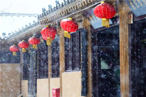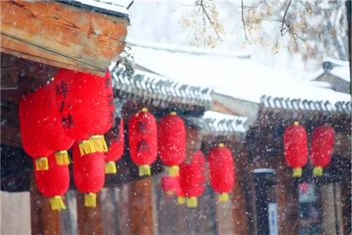 風花雪月紅墻內,人間煙火茅瓦中。南苑的一片雪白中,夾雜著一抹耀眼的紅。