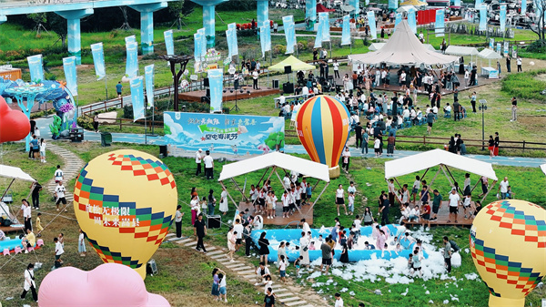 除了壯觀的空中景觀,活動現(xiàn)場還設置親子球趣世界、夏日消暑泡泡樂等多個互動體驗區(qū),而“嵩州好歌聲”大賽更是將活動推向高潮。