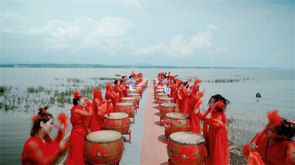 為進一步豐富游客的體驗,8月4日當天,“鼓·漾陸渾”活動也在陸渾湖畔舉行。來自嵩縣城關鎮(zhèn)、田湖鎮(zhèn)的三支鼓舞隊,在迷霧森林、愛情島和牛寨小洱海等景點進行精彩的表演。