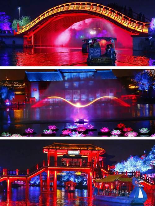 夜間的《大宋·汴河燈影》,坐船體驗(yàn)清明上河園的春夏秋冬四季。